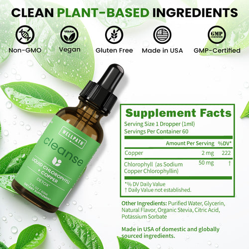 Cleanse Liquid Chlorophyll Drops is a 100% plant-based supplement that supports you by: